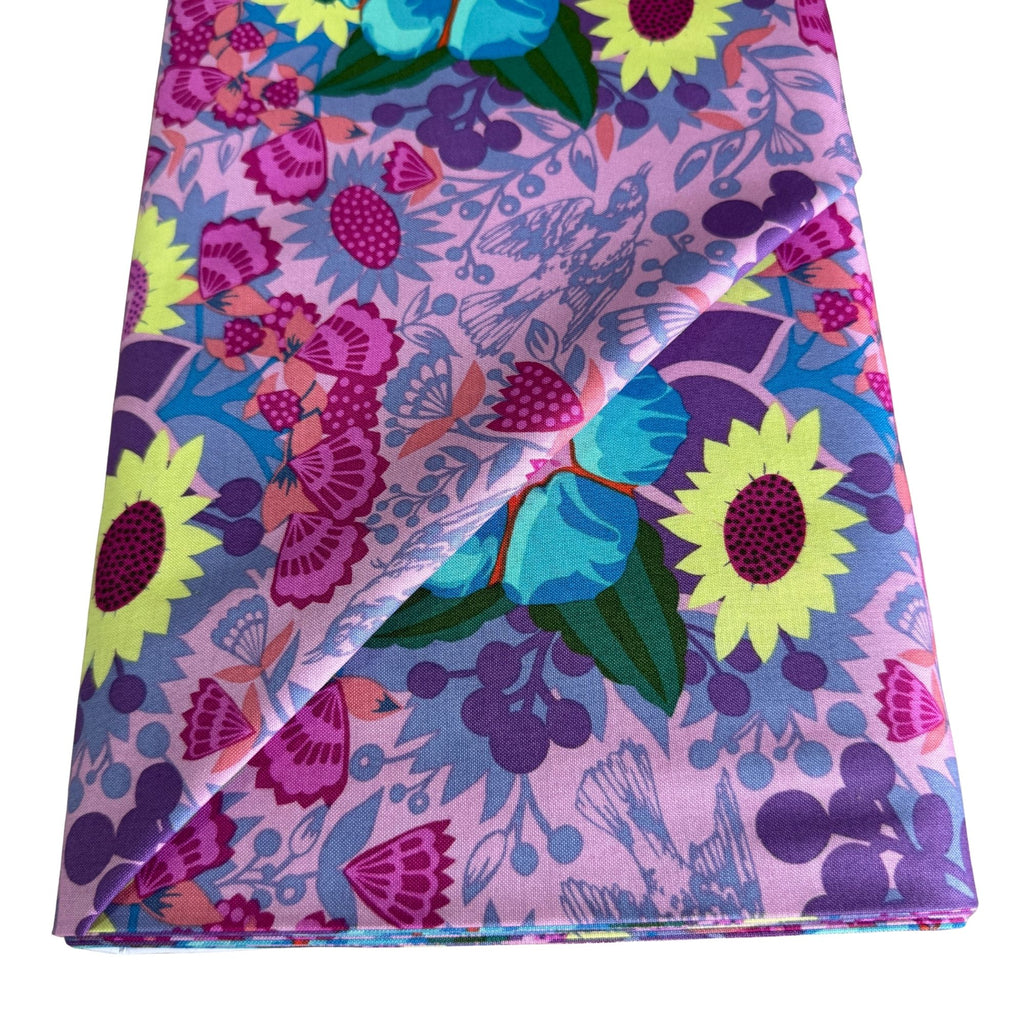 Centrepiece in Grape is from the Overdressed collection by Anna Maria Parry (Horner) for Anna Maria Textiles and Northcott Fabrics.