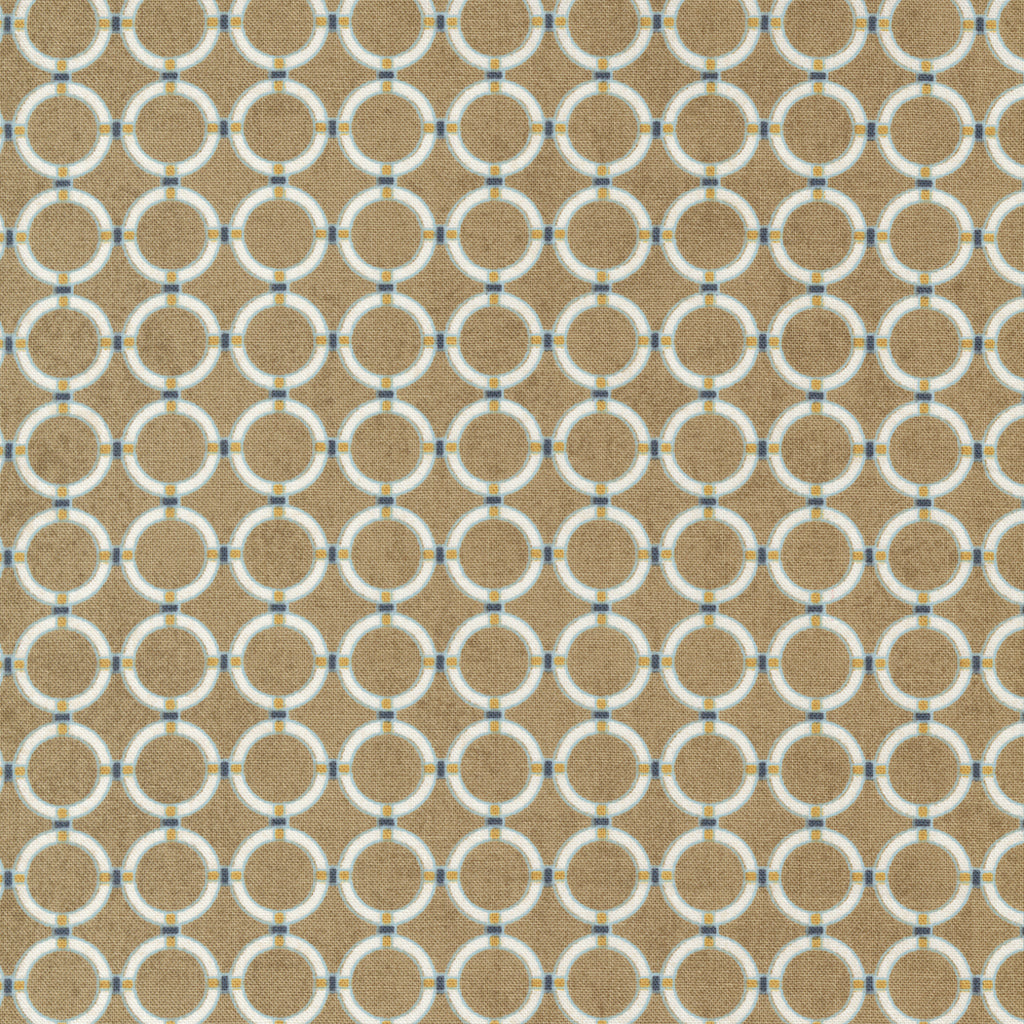 Gather in Bark is a geometric print from BasicGrey's fabric range called Nutmeg. Concentric circles on a nutty brown background.