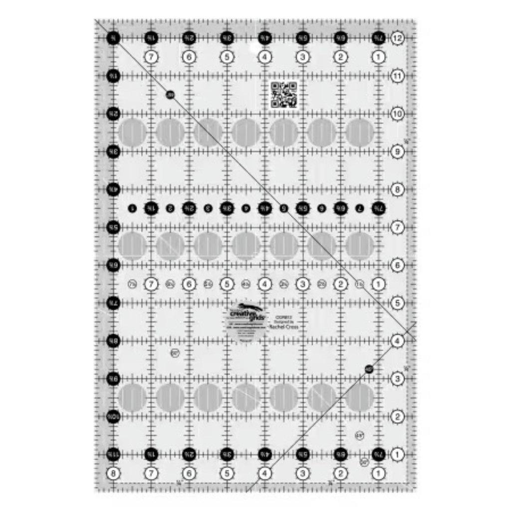 This handy 8-1/2in x 12-1/2in rectangle ruler from Creative Grids® helps you cut wider strips and squares, but also has all of the features you’ve come to know and love in our rulers.