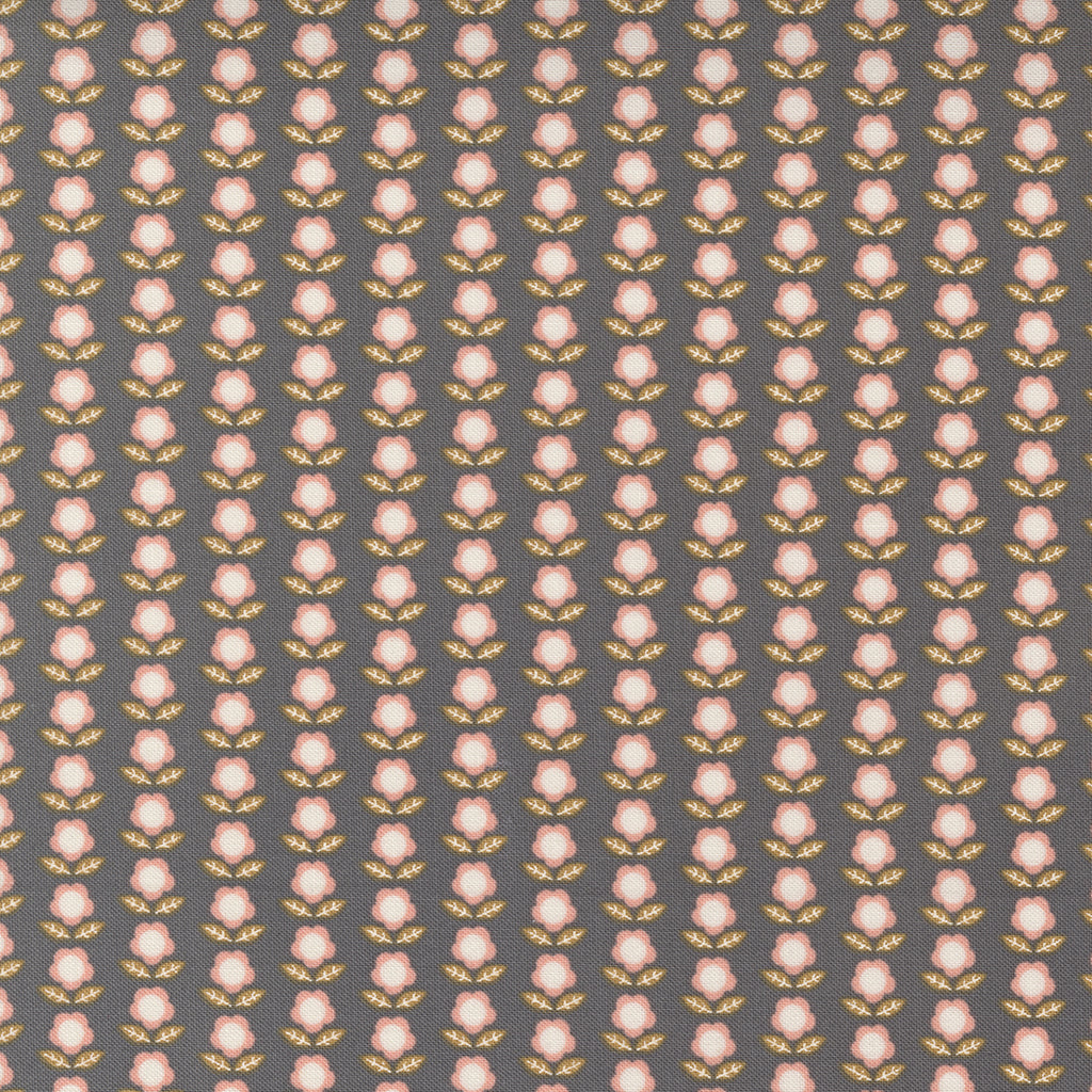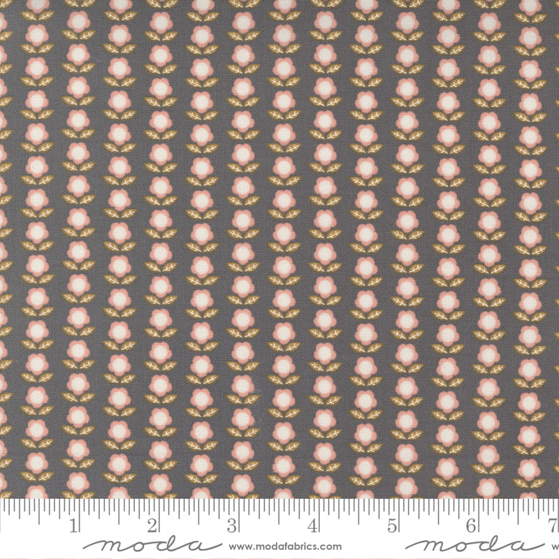 Little flowers on a pebble grey background is Gingiber's fabric range called Birdsong for Moda Fabrics.