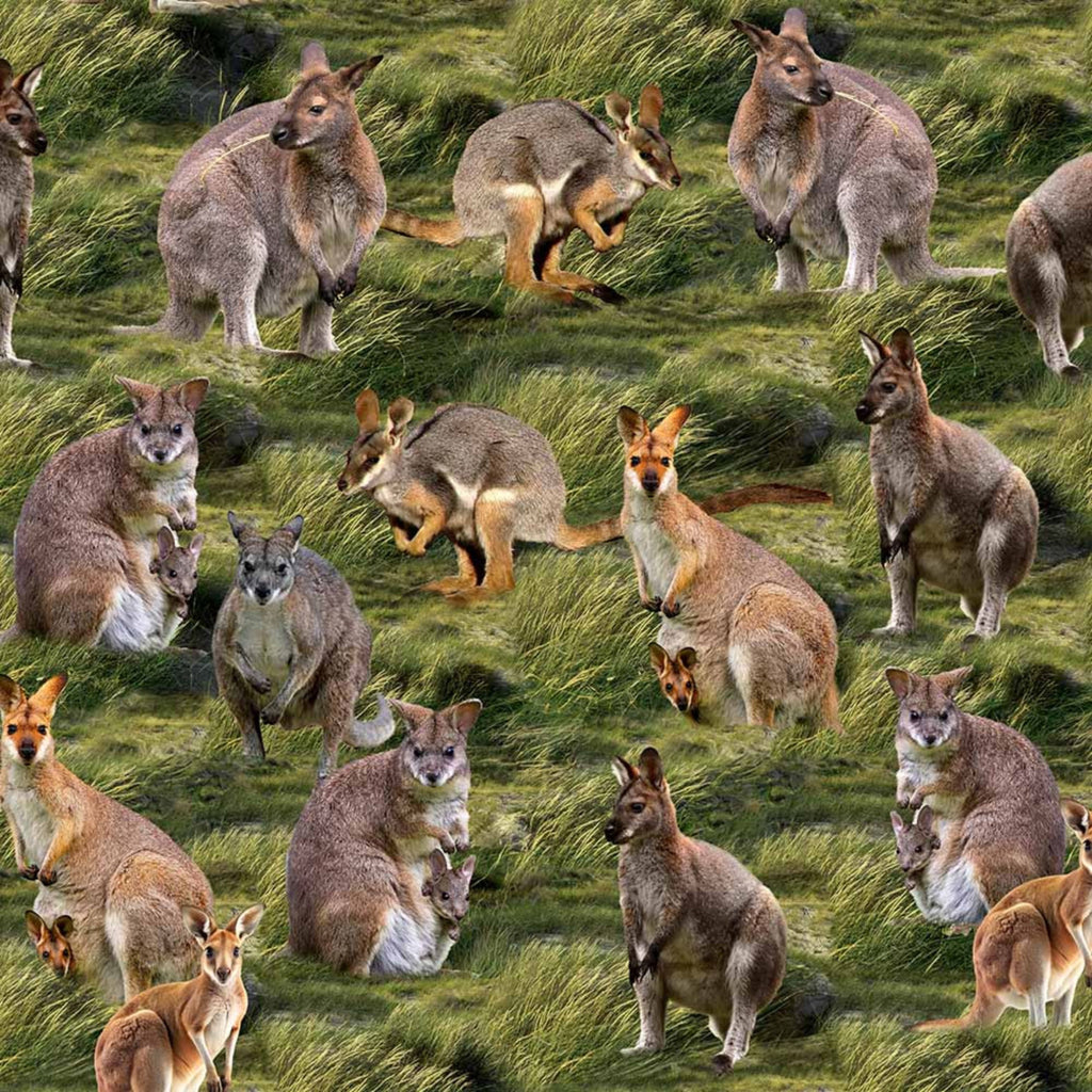 Wallabies and their joeys (babies) at play in on Australian grasslands.
