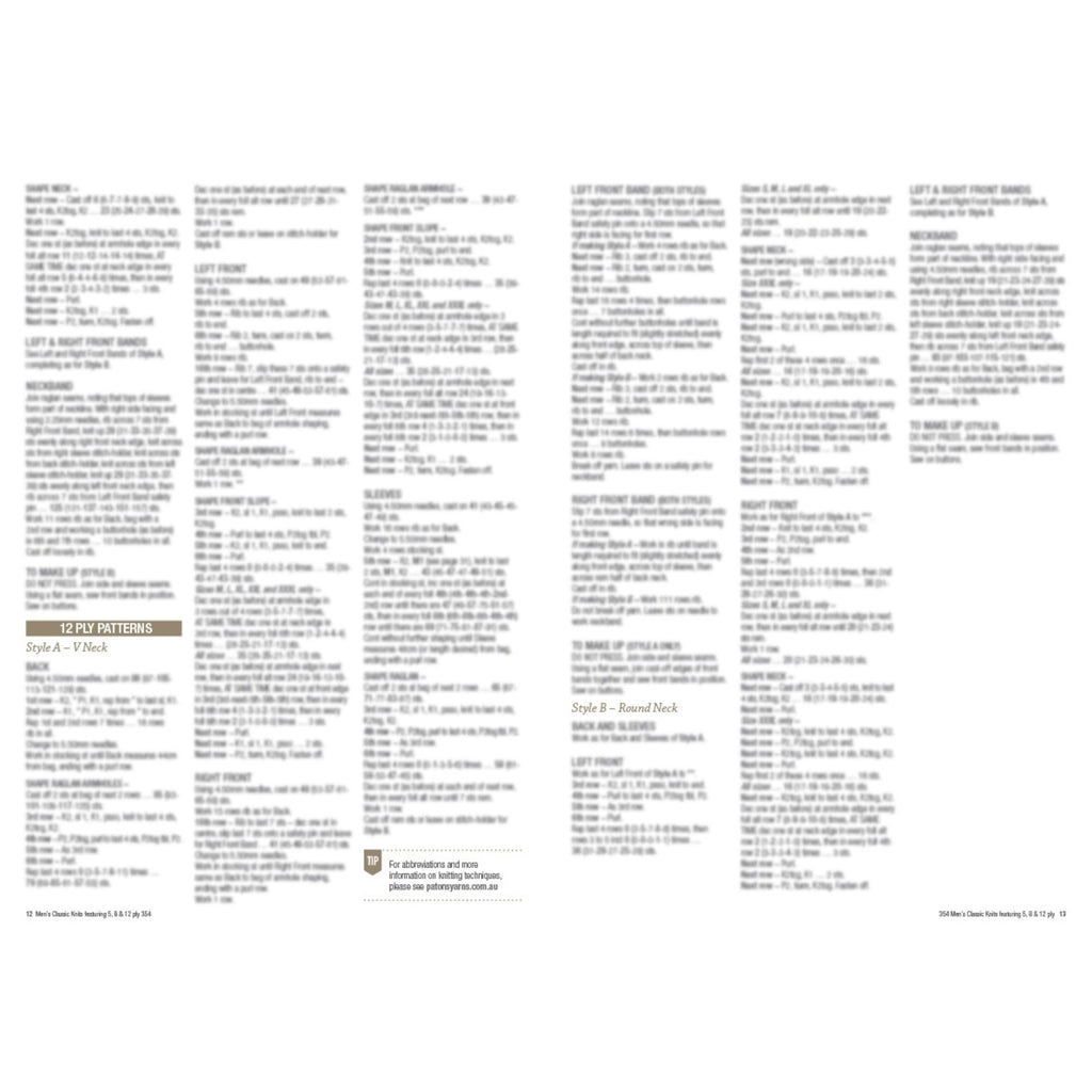 Simple classic knitted jersey designs with options for neckline and sleeves - 38 design options featuring 5 ply, 8 ply & 12 ply yarns.